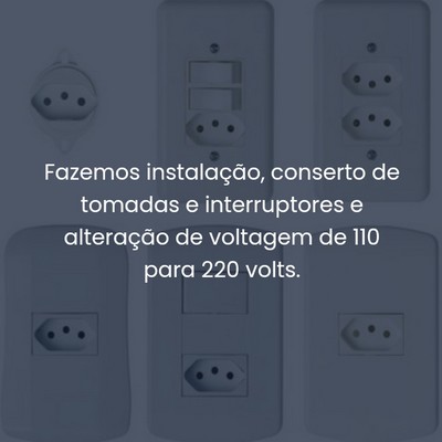 Fazemos instalação, conserto de tomadas e interruptores e alteração de voltagem de 110 para 220 volts.