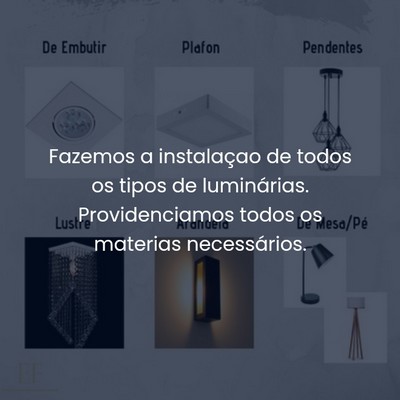Fazemos a instalação de todos os tipos de luminárias. Providenciamos todos os materiais necessários.